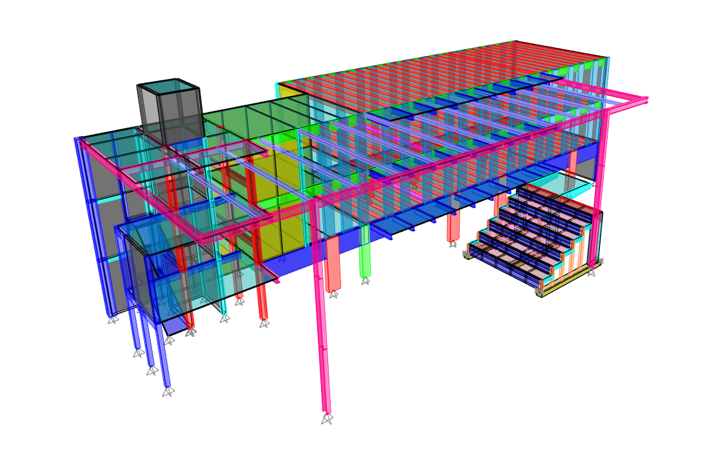 Se desarrolló un sistema estructural que permitió integrar el pasillo como parte del comportamiento global del conjunto, garantizando continuidad estructural y adecuada transferencia de cargas.