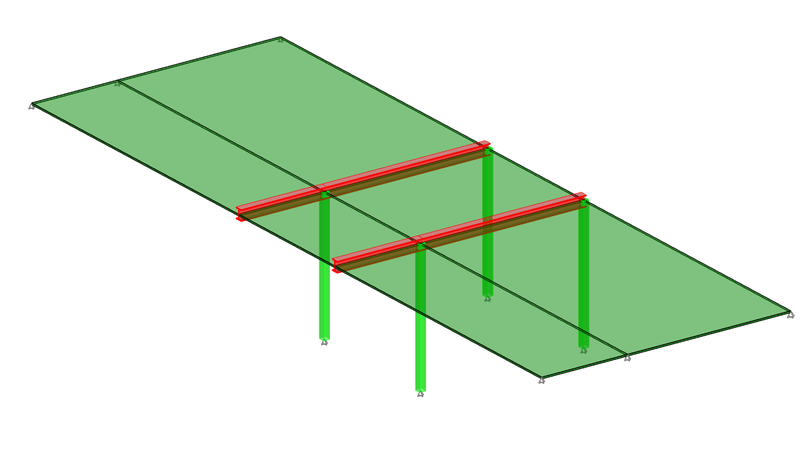 Estas losas fueron soportadas mediante vigas metálicas con dos apoyos y un volado aproximado de 3 m por lado, requiriendo verificación detallada de momentos negativos y control de deflexiones.